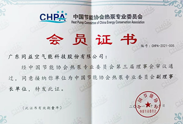 不僅如此,同益空氣能憑借強(qiáng)大的品牌實(shí)力和先進(jìn)的技術(shù),為我國節(jié)能減排事業(yè)做出巨大貢獻(xiàn),獲得了行業(yè)及業(yè)內(nèi)專家的充分肯定。經(jīng)中國節(jié)能協(xié)會熱泵專業(yè)委員會第三屆理事會審議通過,同益空氣能成為中國節(jié)能協(xié)會熱泵專業(yè)委員會副理事長單位。